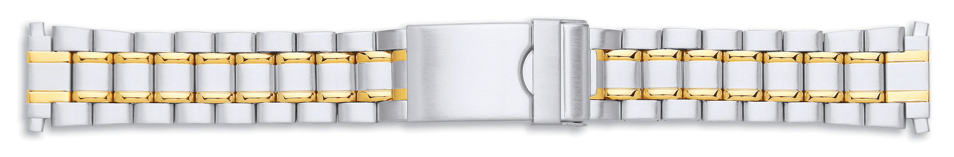 Strong, secure, and classically styled, the Gents Centre Fold Bracelet With Lock is designed to enhance your timepiece with lasting performance and timeless appeal. Featuring a durable centre folding clasp with an integrated safety lock, this bracelet offers reliable security while maintaining a clean, streamlined look on the wrist. Squeeze ends.