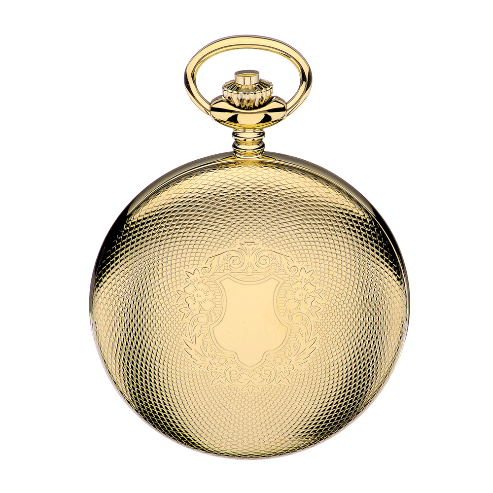 This luxury Mount Royal pocket watch features a 17 jewelled mechanical movement and classic white Roman dial. The watch face is surrounded by a gold plated case complete with a polished back.