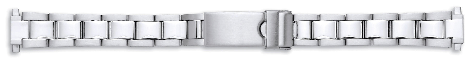 Sleek, secure, and designed with timeless appeal, the Ladies Semi Solid Link Centre Folding Clasp With Lock Bracelet brings refined strength to your timepiece. Featuring semi-solid links, this bracelet strikes the perfect balance between flexibility and durability—delivering a comfortable fit without compromising on structure.