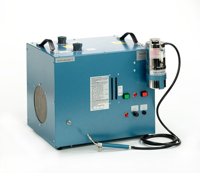 The Microwelder is a compact, portable gas generator producing an oxygen and hydrogen mixture cheaply from distilled water.