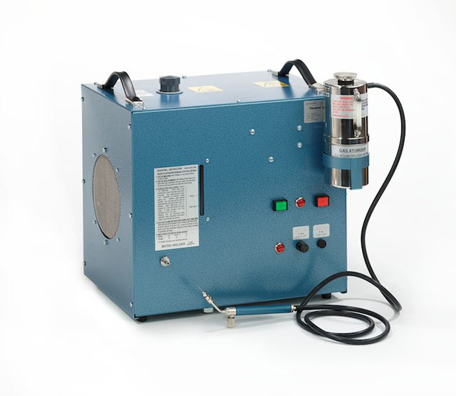 The Microwelder is a compact, portable gas generator producing an oxygen and hydrogen mixture cheaply from distilled water.