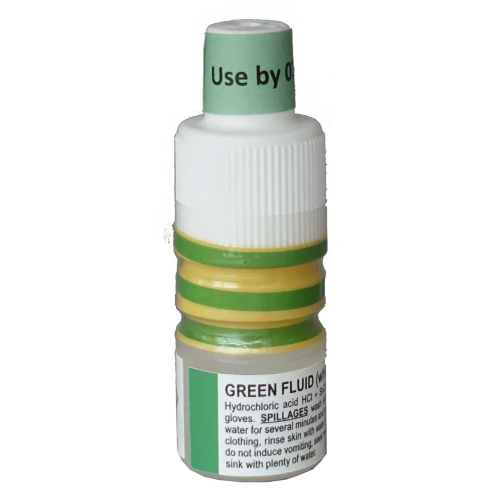 Each plastic bottle is supplied with a child-resistant cap and dropper, containing enough acid for approximately 150 tests.
